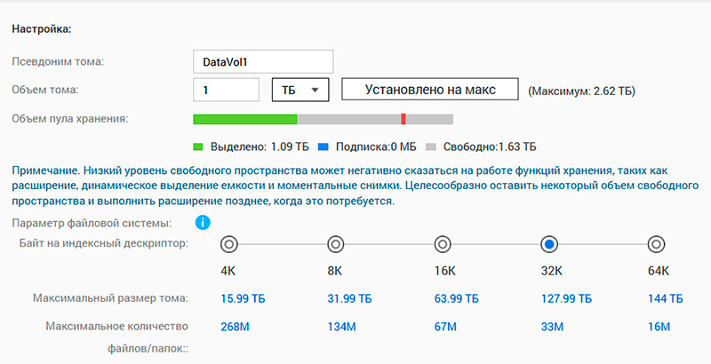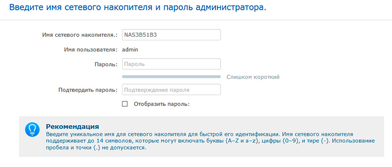 На последнем этапе при установленных двух дисках накопитель предложит выбрать конфигурацию дисков и файловую систему. Но у меня был установлен только один диск, поэтому, разумеется, на данном этапе мне ничего не предложили (и замечу, что NAS пул хранения с одним диском не стал создавать).