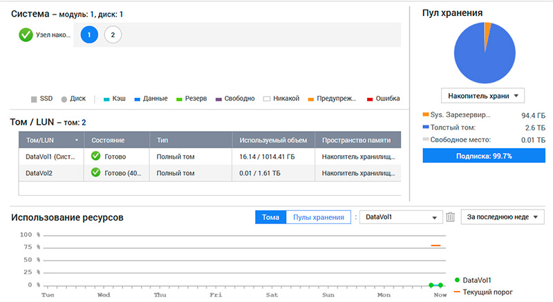 Порог тревоги - это сообщать при превышении заполнения определенного объема диска.