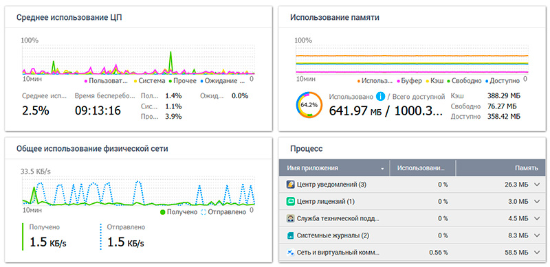 Различную информацию о работе NAS можно получать через приложение Qmanager. Также можно через это же приложение настраивать различные параметры.