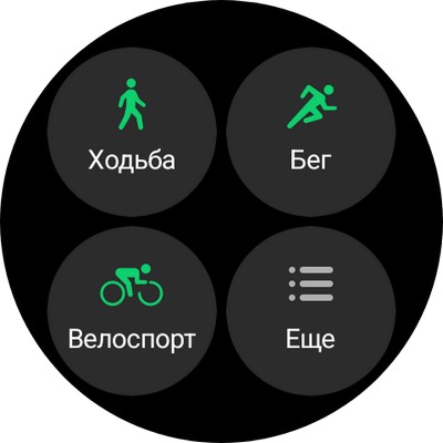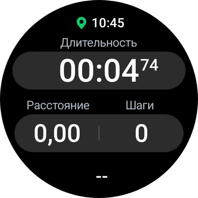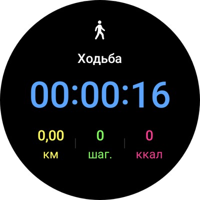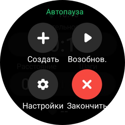 Wear OS - система многозадачная, так что в процессе тренировки вы в любой момент можете перейти к другому приложению, а тренировка будет отслеживаться в фоне (при этом пиктограмма тренировки будет зеленой и тренировку, разумеется, можно будет вернуть на экран). На циферблате ниже внизу виден символ отслеживания ходьбы, по нему можно нажать и вернуться на окно тренировки. По окончании тренировки выдается скроллируемое окно со всякими данными тренировки.