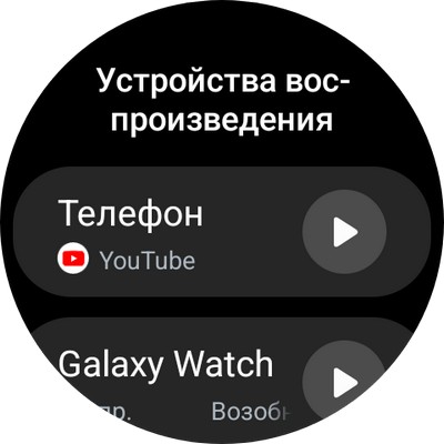 Плеер может воспроизводить аудио непосредственно с часов, а может управлять воспроизведением на смартфоне.