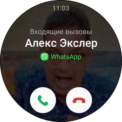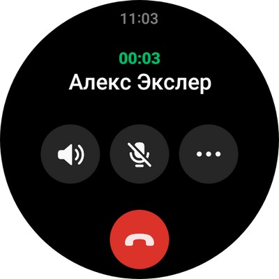 Входящий вызов, режим разговора. Здесь есть динамик и микрофон, так что разговаривать можно прямо с часов. Также если вы купите версию с поддержкой eSIM, то с собой и смартфон можно не брать: звонок придет на часы и с них можно будет ответить, также с часов можно будет сделать вызов.