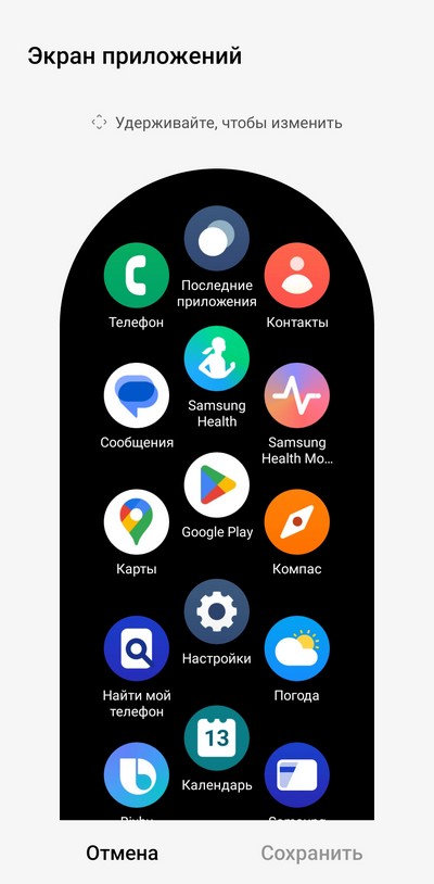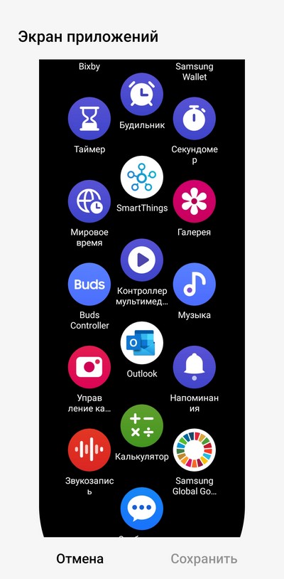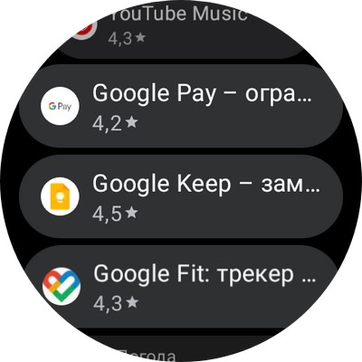 Свайп от дисплея вверх - все установленные в часах приложения.