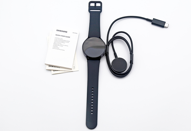Часы с ремешком. Что интересно, тут в комплекте шел ремешок, рассчитанный на широкое запястье. Если у всех предыдущих моделей Galaxy Watch я с моим узким запястьем застегивал ремешок на третью-четвертую дырку, то тут даже на первой часы слишком свободно сидели на руке. Нет, понятно, что ремешок - дело наживное, его можно заменить, но просто странно как-то: раньше такого не было.