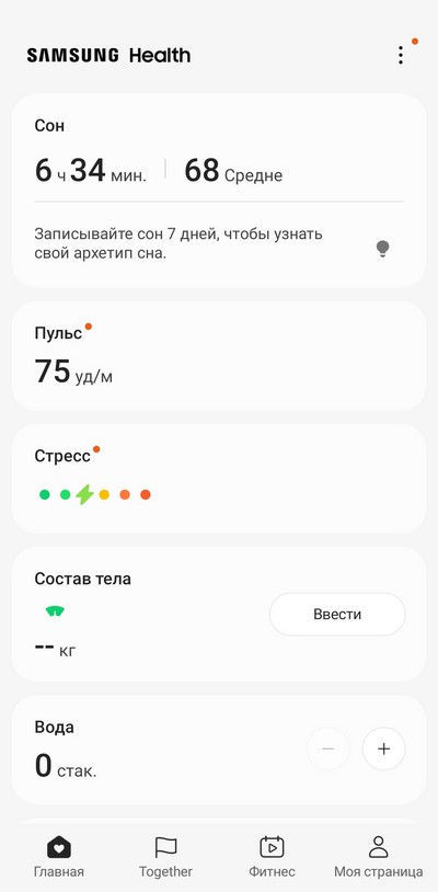 Приложений на смартфоне понадобится два: Galaxy Wearable, которые работают с часами, и Samsung Health, в котором отображаются все измерения.