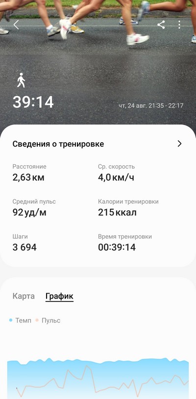 Запуск тренировки из карточки мультитренировок. Также тренировку можно запускать из Samsung Health - что с часов, что со смартфона.