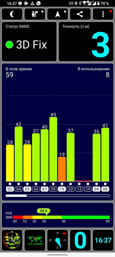 Навигация: GPS (два диапазона: L1/L5), GLONASS (L1), GALILEO (E1/E5a), BeiDou (B1/B2a), QZSS (L1/L5), NavIC (L5)