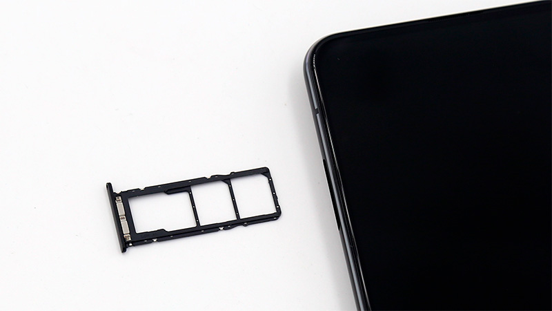 На левой грани - слот со вставкой под сим-карты и карту памяти. Обратите внимание на то, что для microSD здесь отдельный слот, а не вместо второй сим-карты, что ценно.