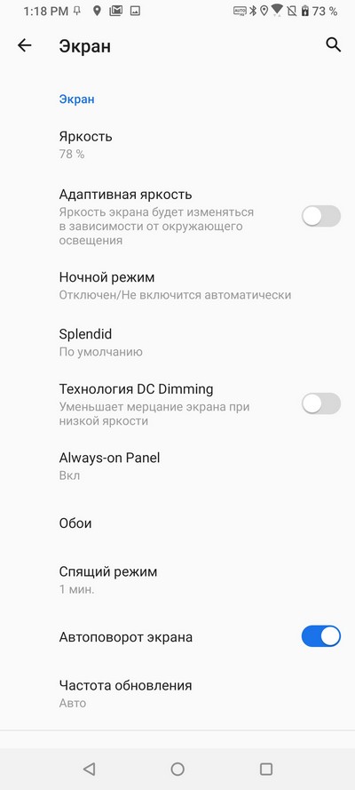 Здесь поддерживается частота обновления экрана в 90 Гц, эту частоту можно настраивать: 60 Гц, 90 Гц или автоматическое обновление.