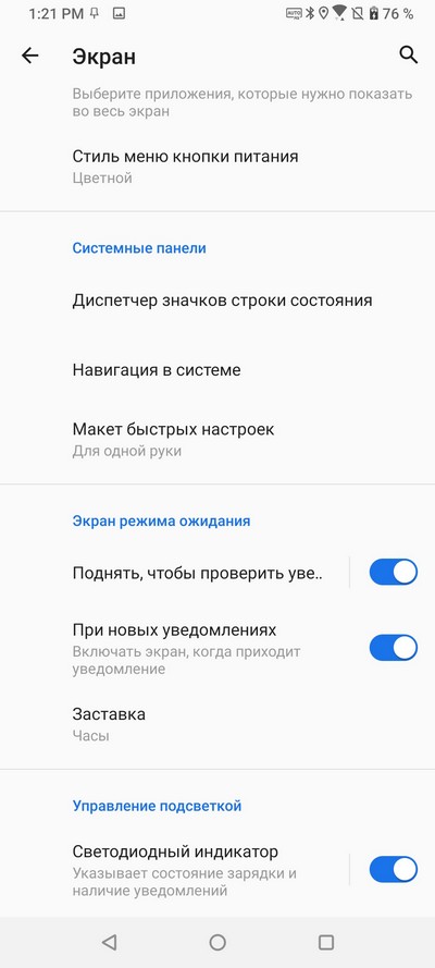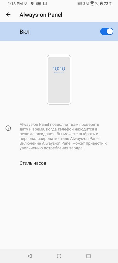 Режим всегда включенного экрана и его настройки.