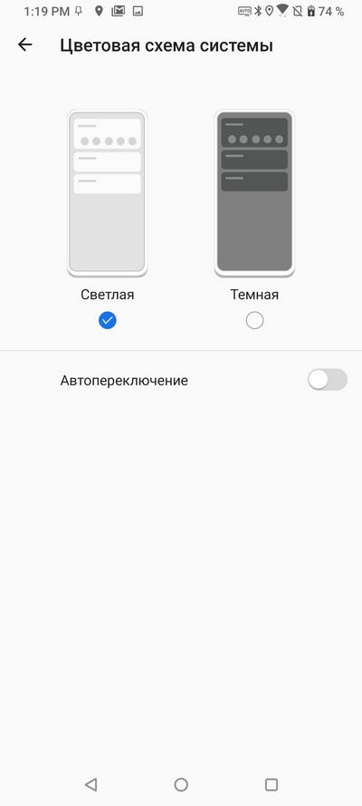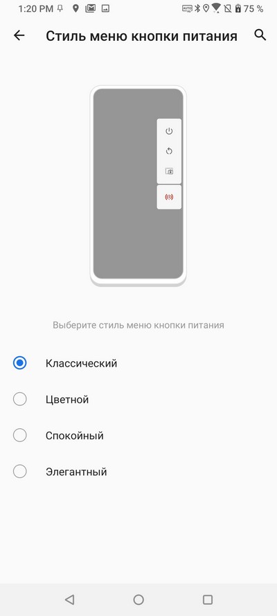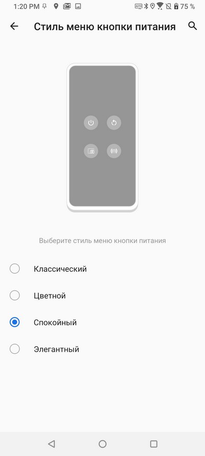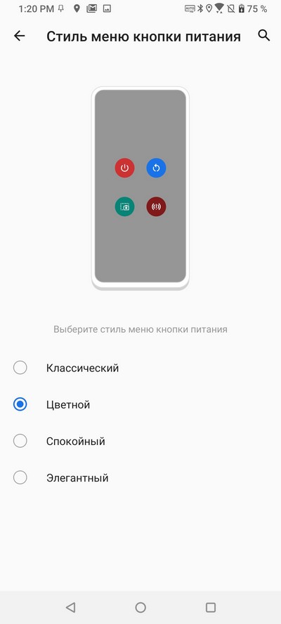 Цветовая схема системы и стиль меню кнопки питания.