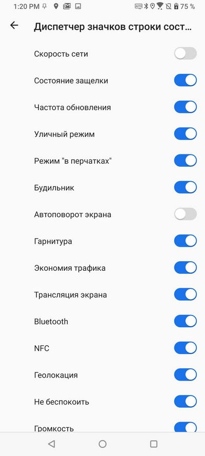 Диспетчер значков строки состояния.