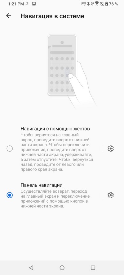 Здесь никаких неожиданностей нет: поддерживаются как настраиваемые экранные кнопки, так и стандартные андроидные жесты.