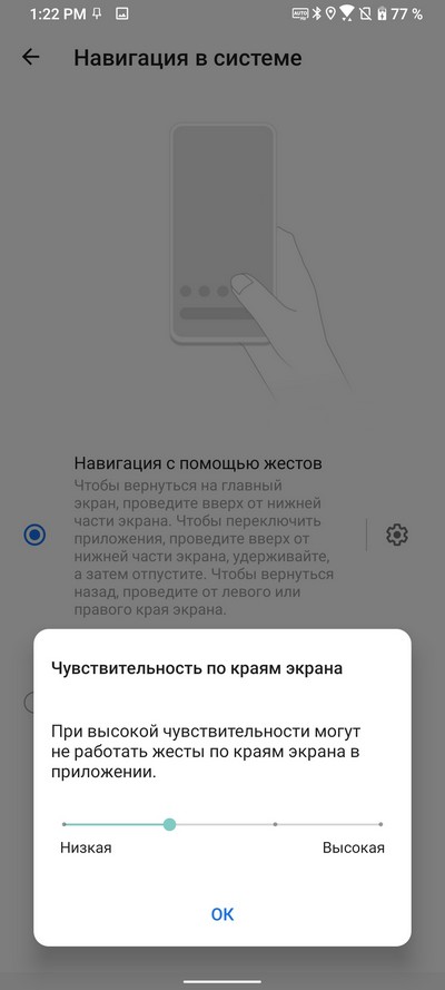 Для жестов можно настраивать чувствительность по краям экрана.