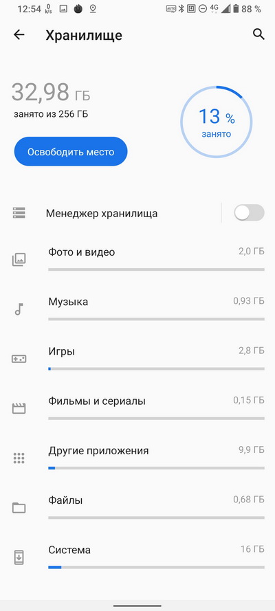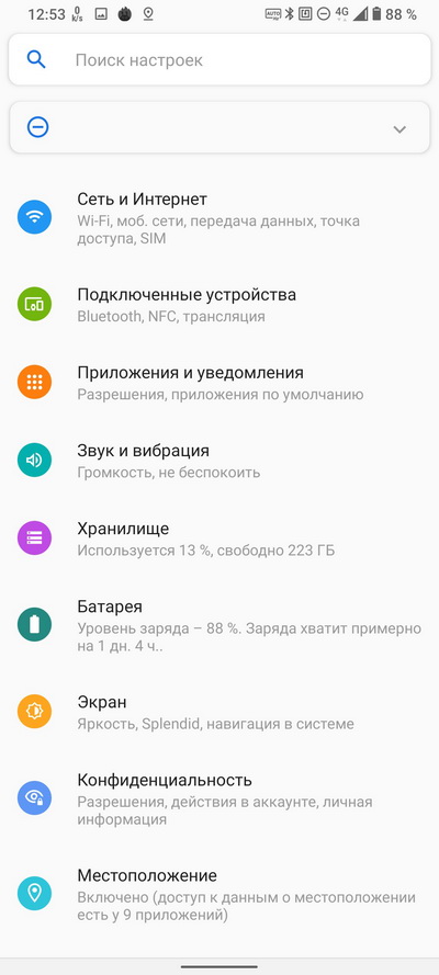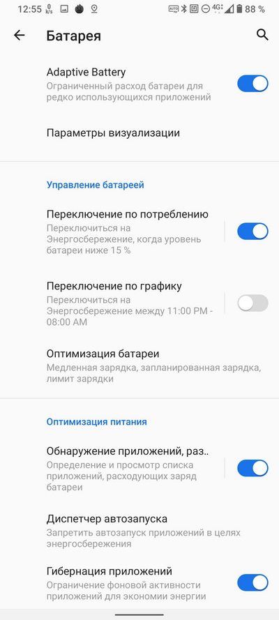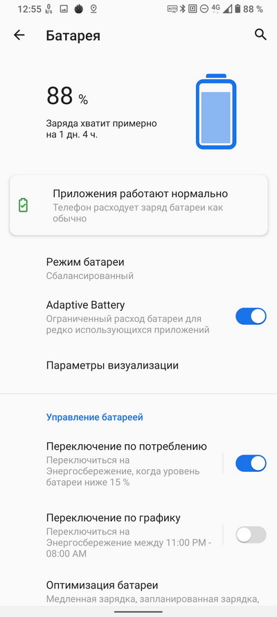 Чисто практически смартфон от одного заряда, в общем-то, жил два дня, но уже на издыхании. После первого дня работы оставалось где-то 50% уровня, иногда и немного меньше. И это на автоматическом режиме частоты обновления дисплея.