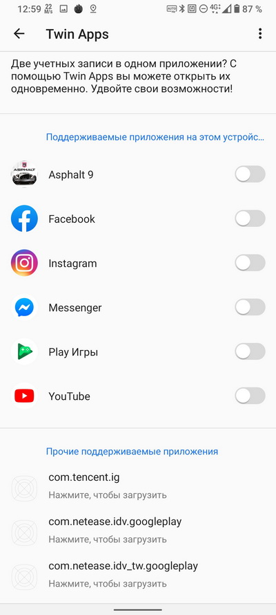 Установленные в системе приложения.