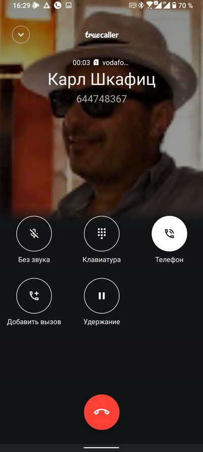 Входящий звонок и режим разговора.
