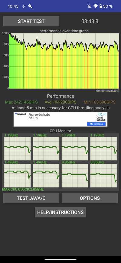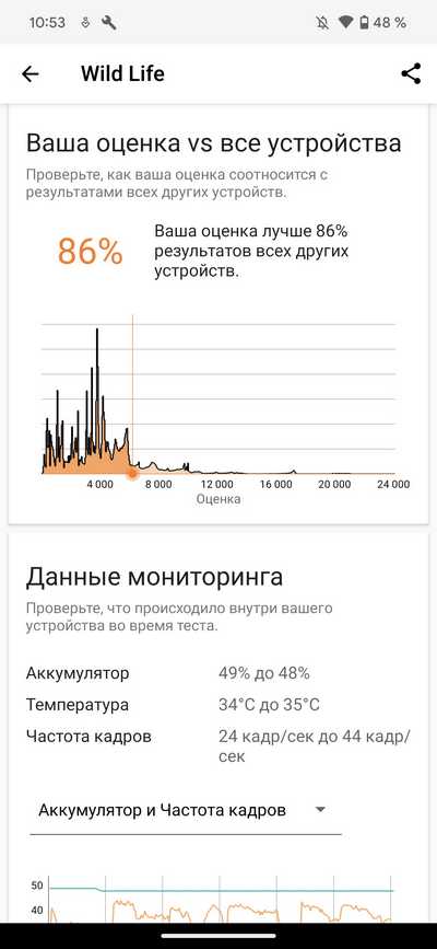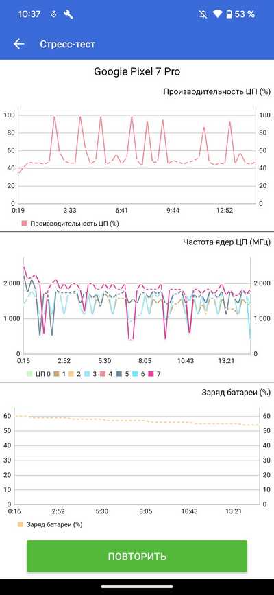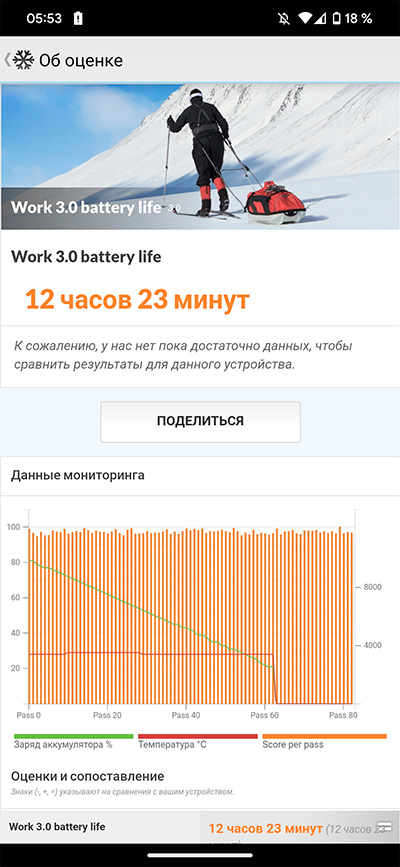 Синтетический тест PCMark. 12 с половиной часов - не лучший результат, но хороший: в смешанном режиме при серьезной нагрузке смартфон продержится полный день.
