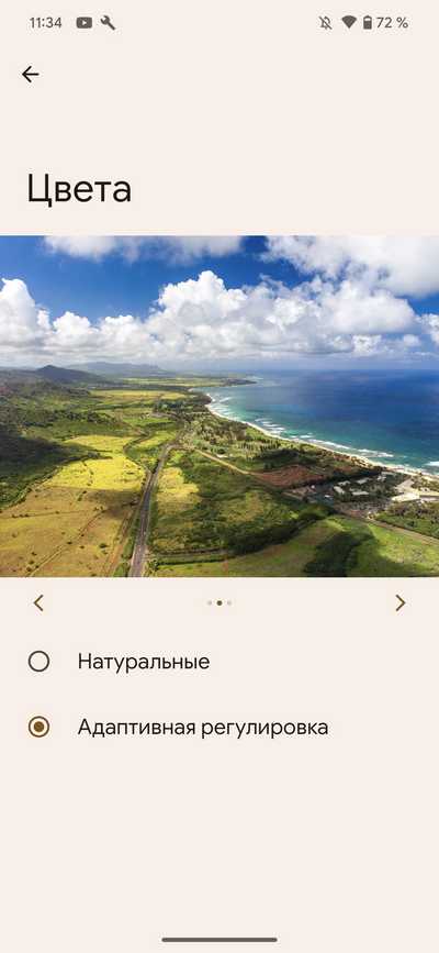Настройки экрана. Тут нельзя принудительно выставить 120 Гц, но можно разрешить смартфону поднимать частоту так, как он считает нужным.