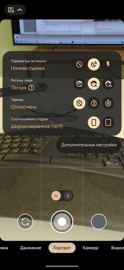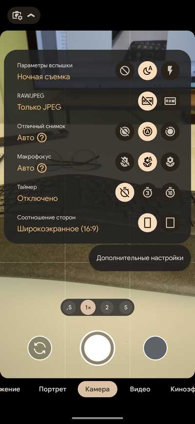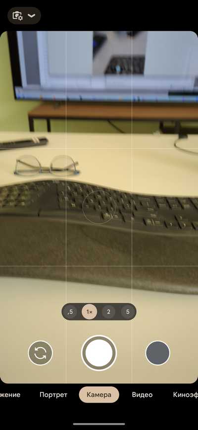 Интерфейс камеры. Снизу идут режимы, кнопка съемки, переключение между основной камерой, сверхшириком, цифровым 2-кратным зумом и оптическим 5-кратным, сверху - дополнительные настройки.