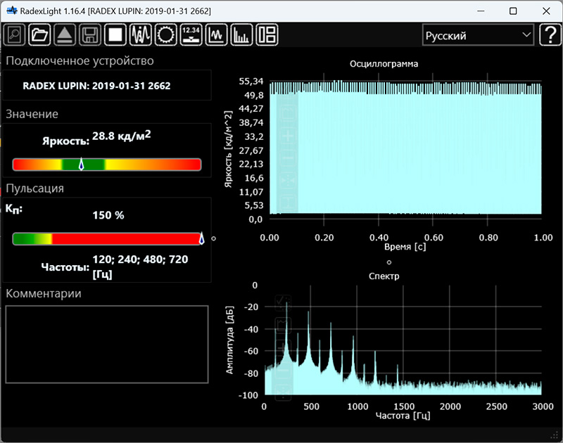 А при 50% (это уже очень темный экран) пульсация вообще зашкаливает.