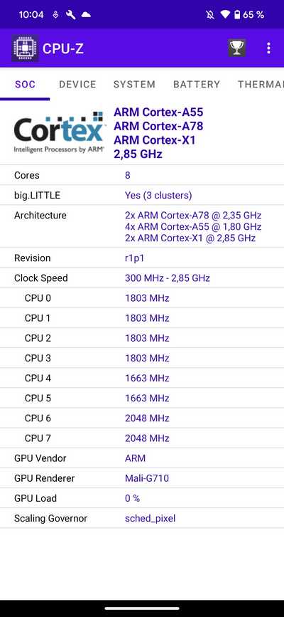 Платформа: Google Tensor G2 (5 nm), Octa-core (2x2.85 GHz Cortex-X1 & 2x2.35 GHz Cortex-A78 & 4x1.80 GHz Cortex-A55)
