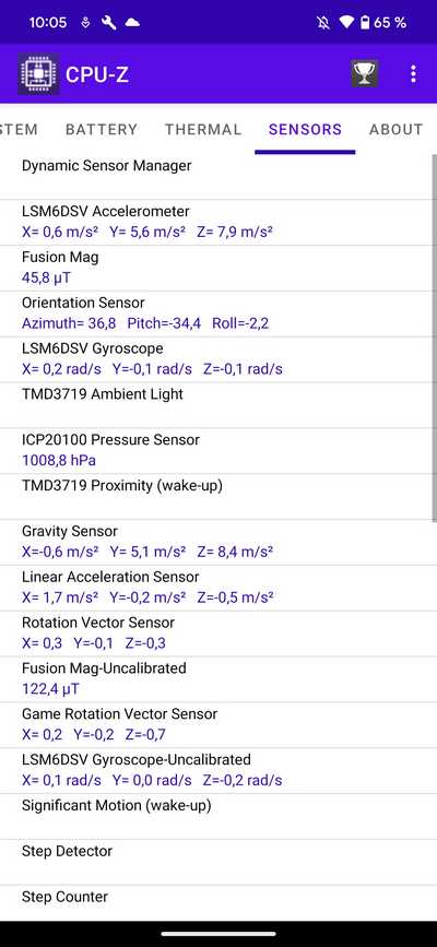 Дополнительно: акселерометр, гироскоп, датчик геомагнитный, датчик освещенности, компас, барометр