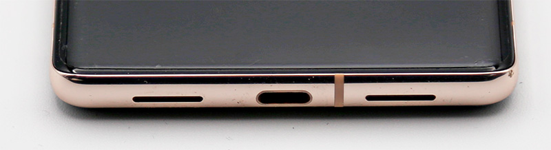 На нижней грани - порт Type-C и две симметричные прорези, под правой из них скрывается стереодинамик (в качестве второго динамика используется разговорный), в левой находится микрофон.