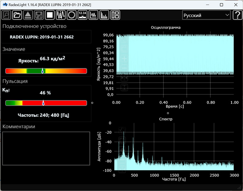 Тут - та же самая история. При 75% яркости пульсация уже в два раза выше нормы!