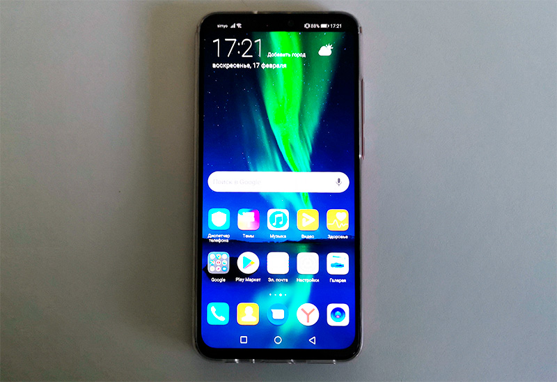 У дисплея соотношение сторон 19:9, и, что интересно, полезная площадь экрана на передней части смартфона составляет 91%. Чтобы добиться такого соотношения, инженерам Honor пришлось придумать новую конструкцию антенн. (Также, кстати, именно этим соотношением объясняется тот факт, что здесь установлен уже архаичный microUSB вместо Type-C.)