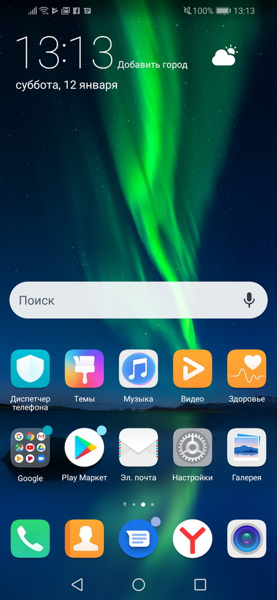 Оболочка EMUI 8.2. Главный десктоп.