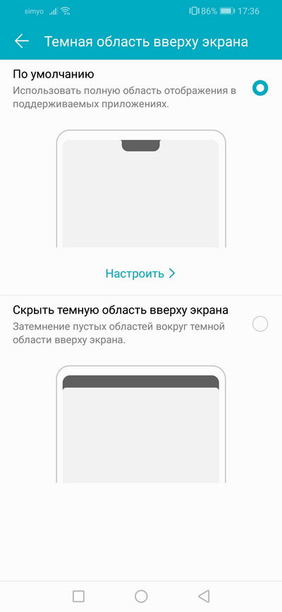 Вот так экран выглядит с отключенной "монобровью". (Почему-то эта "монобровь" страшно бесит многих пользователей: я до сих пор не могу понять почему. Ну и кроме того, в Huawei она отключается, раз уж бесит.)