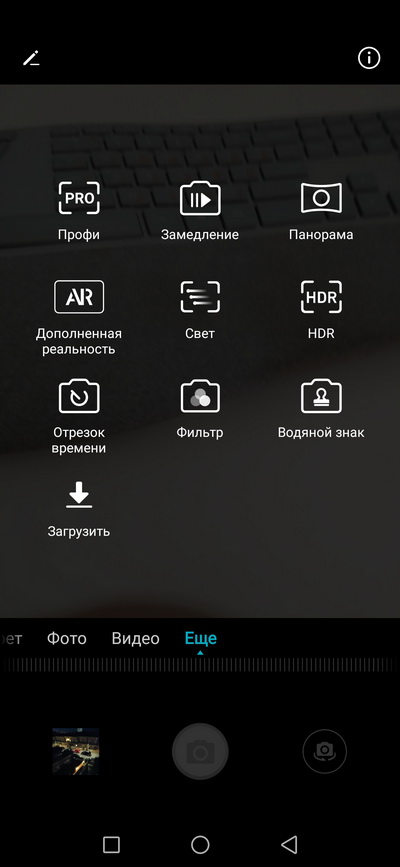 Интерфейс камеры.