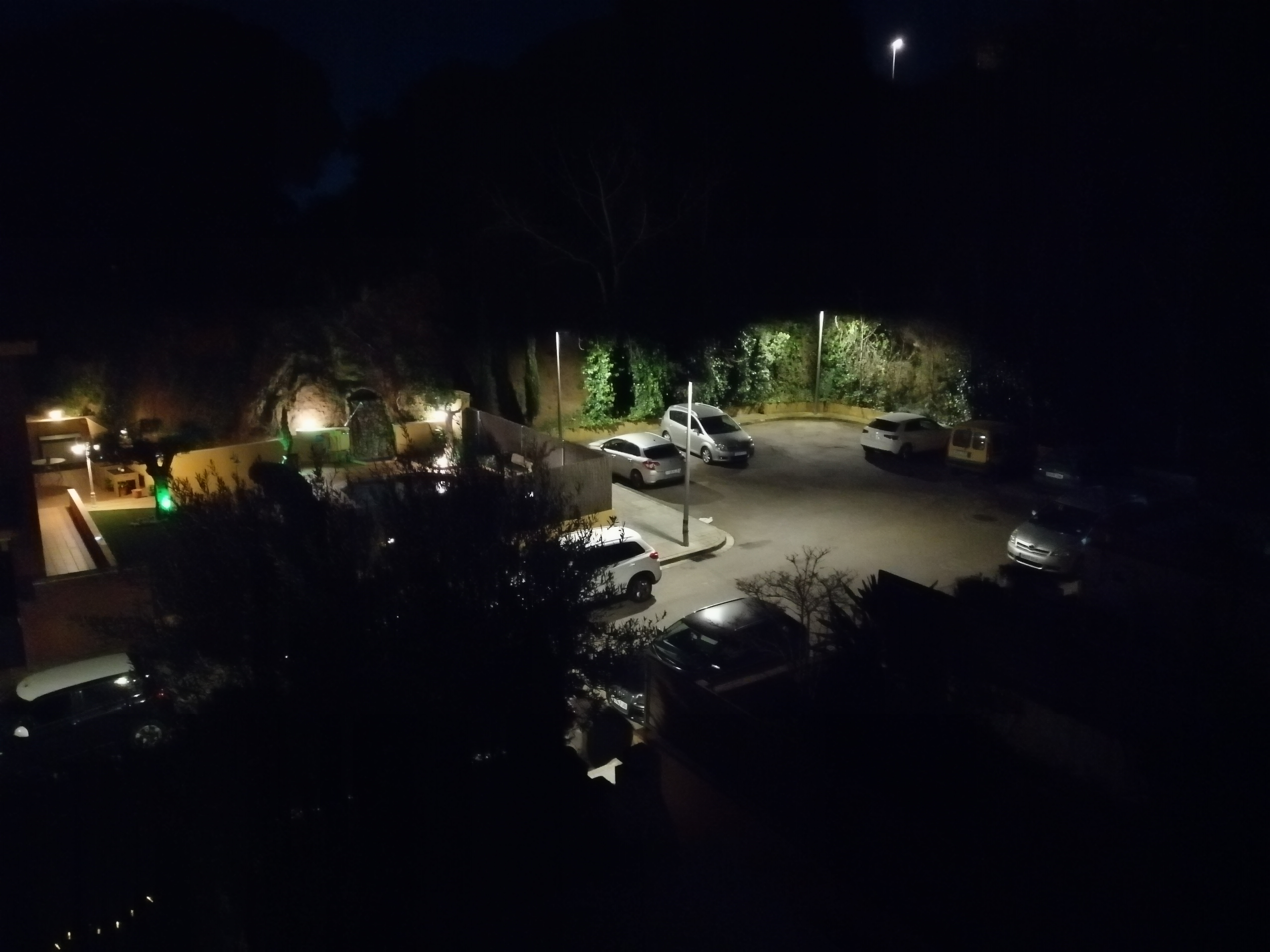 Ночные кадры в обычном режиме. Терпимо вполне. Ожидаемо заметно шумит, софт изображение замыливает, чтобы поменьше шумело.