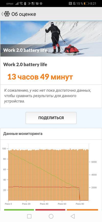 Как и ожидалось, с автономностью здесь все очень хорошо. При моем обычном сценарии использования смартфон уверенно жил полных два дня: в конце первого дня обычно оставалось где-то 60-65% заряда.