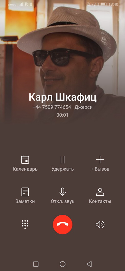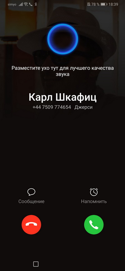 Входящий звонок. Динамик здесь, как я упоминал выше, находится под дисплеем, поэтому вам показывают, куда, собственно, прикладывать ухо, чтобы было лучше слышно.