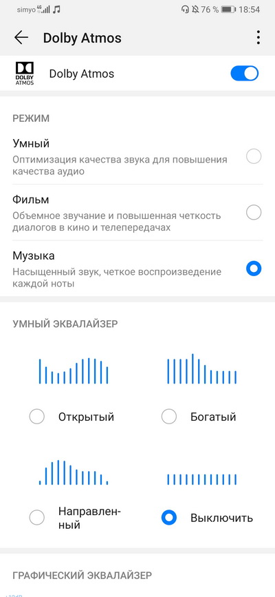 Для наушников также можно включать различные режимы, которые действительно улучшают звучание.