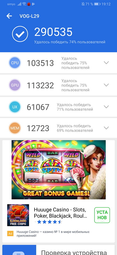 Теперь о средствах биоидентификации. Встроенный в дисплей сканер отпечатка работает получше, чем у Mate 20 Pro: теперь срабатывает достаточно четко, дискомфорта не доставляет. (У Mate 20 Pro, говорят, тоже поправили с очередной прошивкой.)