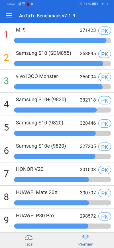В рейтинговой таблице этот смартфон стоит на девятом месте.