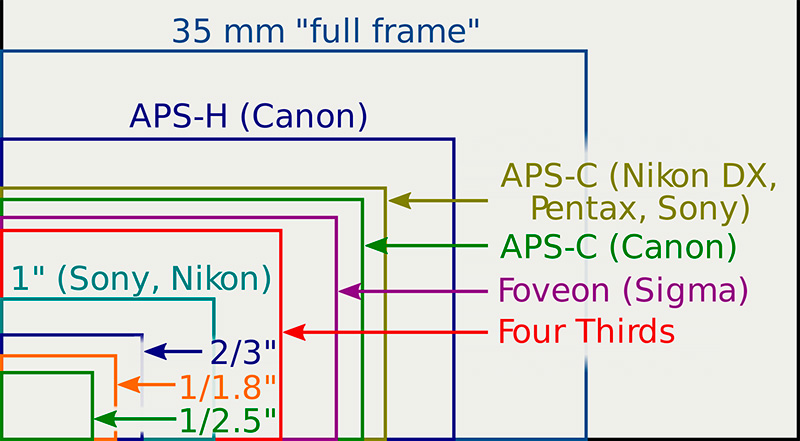Даже крупную для смартфона 1/1,7", которая здесь установлена для основного модуля, не сравнить по размеру с матрицей, например, APS-C. Вот картинка отсюда. Посмотрите на размер 1/1,8" и APS-C.