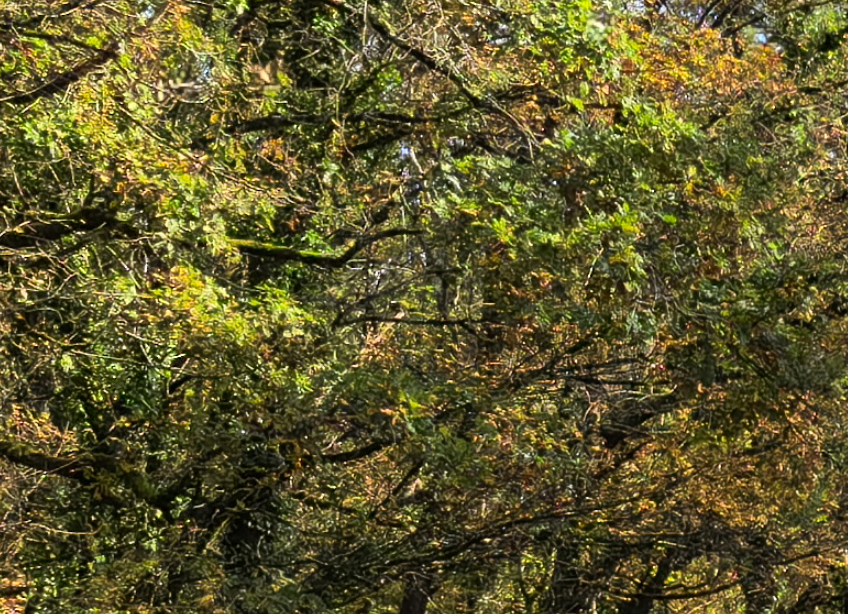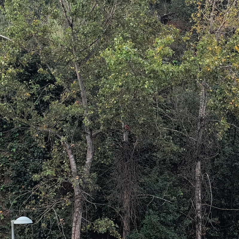 Вы посмотрите на эти чудовищные червячки вместо текстуры на стенах домов. Во что превращает штукатурку шумодав от Хуавей - а у него всегда был шумодав агрессивный. Тут вообще AI-шумодав, который определяет чёткие границы - спасибо ему, сохраняет красивые линии, но если речь идёт о текстурах, нещадно убивает их.