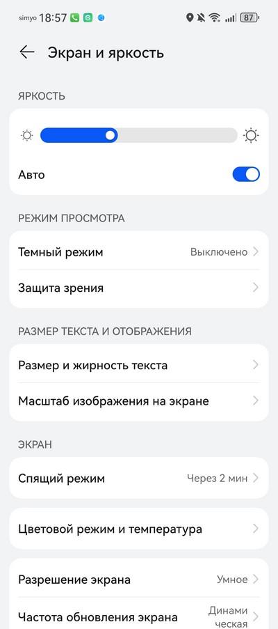 Настройки экрана.