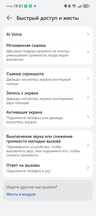Быстрый доступ и жесты.