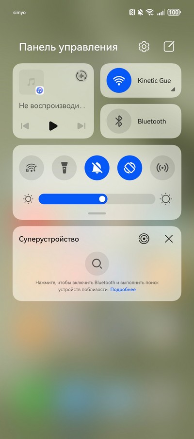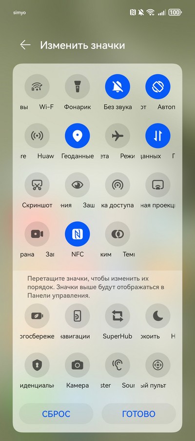 Панель управления, настройки быстрых переключателей.