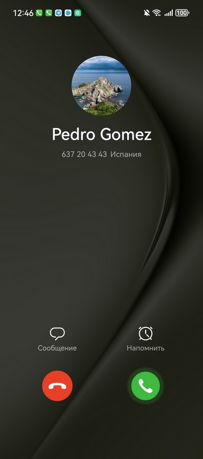 Входящий звонок, режим разговора.