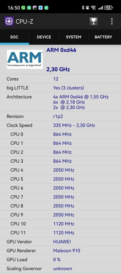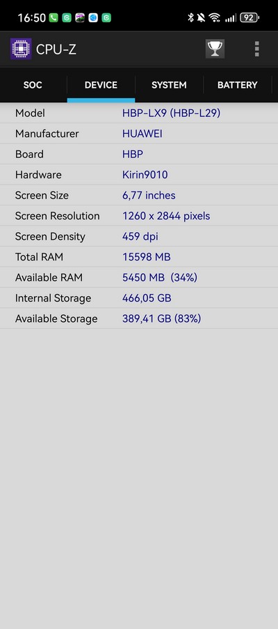Платформа: Kirin 9010 (7 nm), Octa-core (1x2.3 GHz Taishan Big & 3x2.18 GHz Taishan Mid & 4x1.55 GHz Cortex-A510)