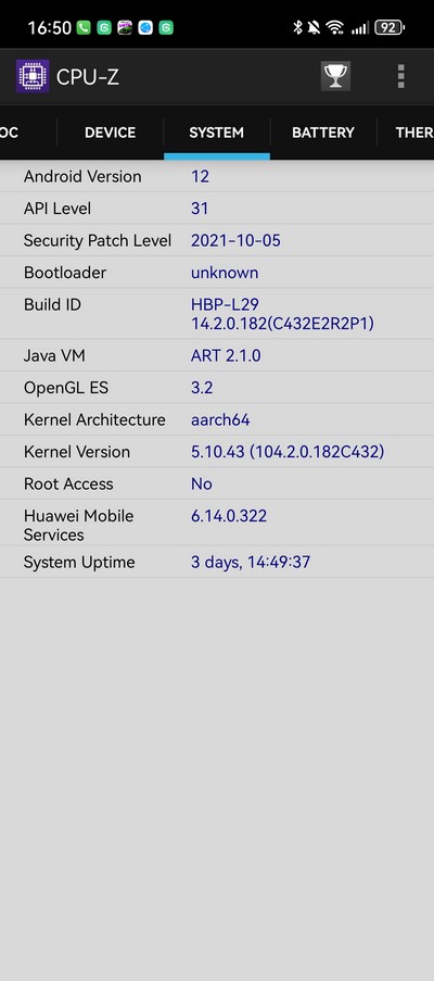 Android 12, оболочка EMUI 14.2.