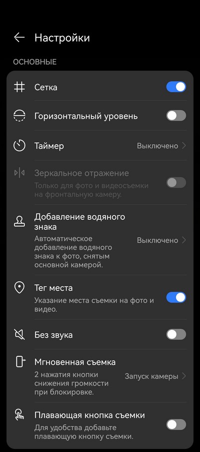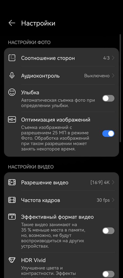 Раздел фото и дополнительные настройки.