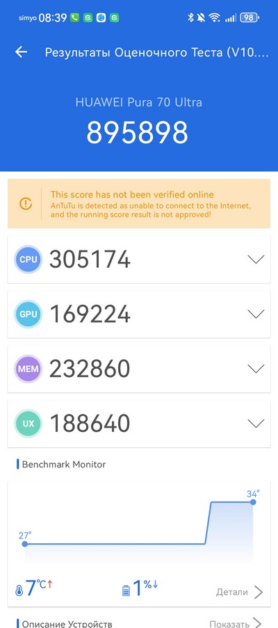 Замечу, что платформа у Huawei Pura 70 Ultra заметно уступает топовым платформам других флагманов (смартфоны Huawei сейчас процентов на 90 состоят из чисто китайских комплектующих), но, впрочем, это заметно только по "попугаям", потому что чисто практически смартфон очень быстрый, не перегревается, все игры идут отлично, никакого недостатка в быстродействии тут нет, так что я бы не преувеличивал эту проблему.