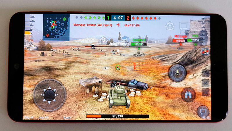 Танки на обычных текстурах (не HD) в основном держали 60 fps, изредка падая на две-три единицы. Скриншот сделать почему-то не дали, поэтому фотография.